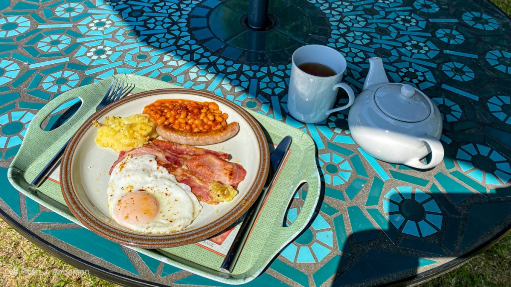 Early on in lockdown I decided to show myself – by doing what English people do not do: sitting in the front garden. I took a small table and two chairs into the front garden so that people could see me; in those early days of lockdown people shut themselves indoors and we never saw anyone, it was really quite eerie.