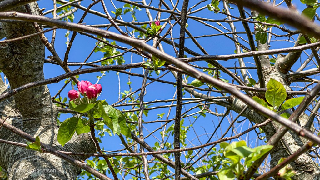 It was not long before the famous Lockdown Lawn Bar opened for business. Myself and the neighbours would sit out in the late afternoon sunshine and enjoy a beer or three, perhaps twice a week. This became a very welcome distraction from lockdown and we made new friends of neighbours passing by. There were other distractions too: on Easter Day I discovered an Easter egg nestling in an apple tree – now that’s something you don’t see every day…
