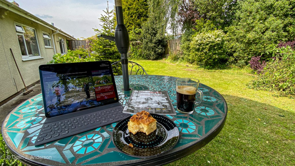 Hopefully if people could see me having a coffee and reading the paper it would bring a degree of normality and reassurance to the cul-de-sac. I have no idea if it worked but it was nice to sit outside for a change and see folks walk by with their dogs.