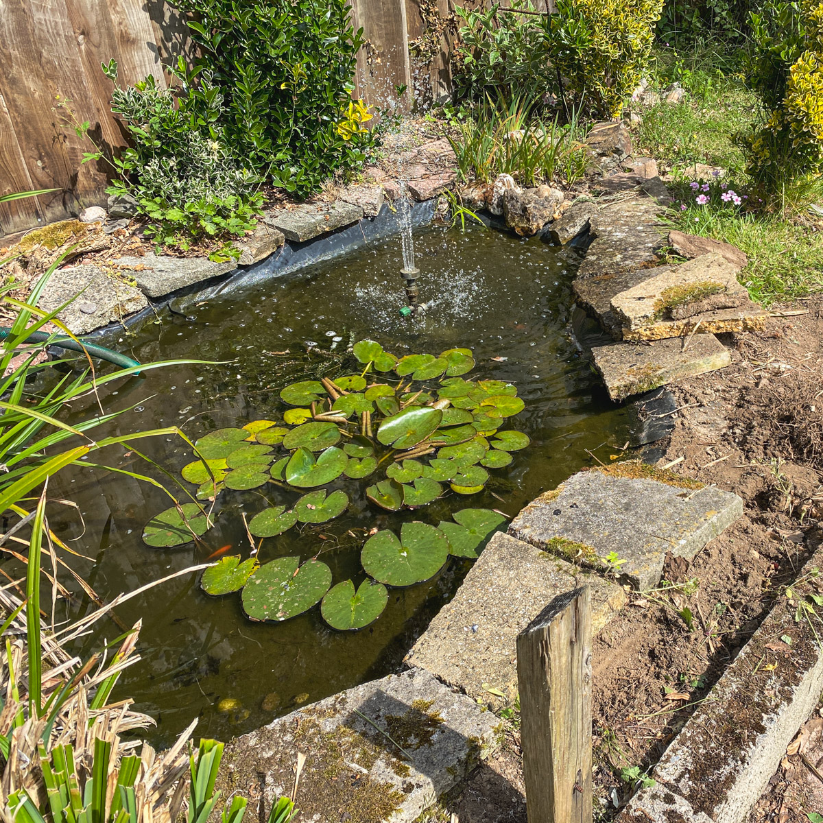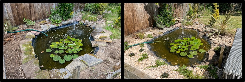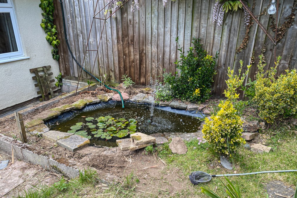 Lockdown provided an opportunity for me to have a go at radically altering the fish pond, which took some days and was very hard work – but worth it.