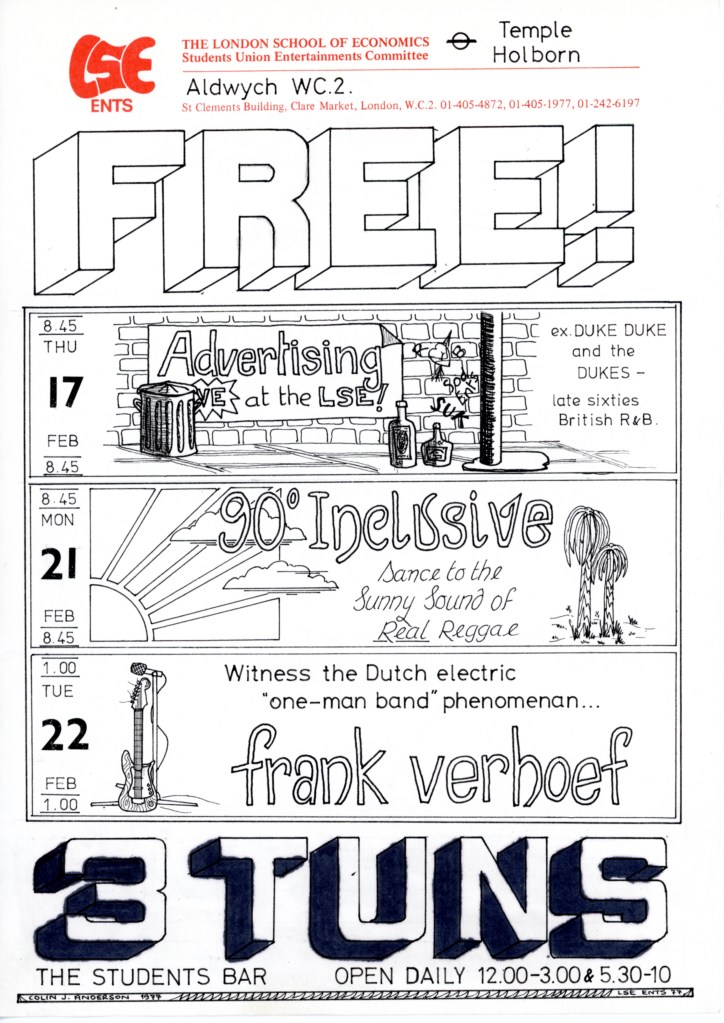 I used to produce the artwork for some of the LSE and 3 Tuns gigs. In those days I had a set of Rotring pens and stencils, and pretty much everything was drawn by hand at my bedsit in Archway.