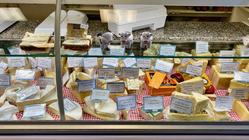 The westcountry has, in my view, the best selection of quality cheese in the world. There are great cheeses from around the world; for example I often buy Montagnolo Blue from Germany in the market deli; truly excellent and the closest I can find locally to a blue brie. Today I stuck to Devon, not intentionally – that was just where my taste buds took me. I bought a wedge of Beenliegh Blue, an excellent ewes milk cheese, a wedge of Sharpham Rustic with garlic and chives and a good old Taw Valley Tasty cheddar.