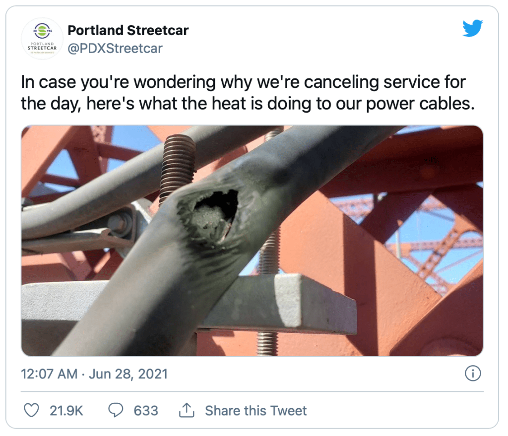 In the summer of 2021 the Pacific north west faced a very unpleasant heatwave. Temperatures are very high indeed and very scary, not just for human health but – and we often forget this when discussing climate change – also for the infrastructure that helps to keep us alive.