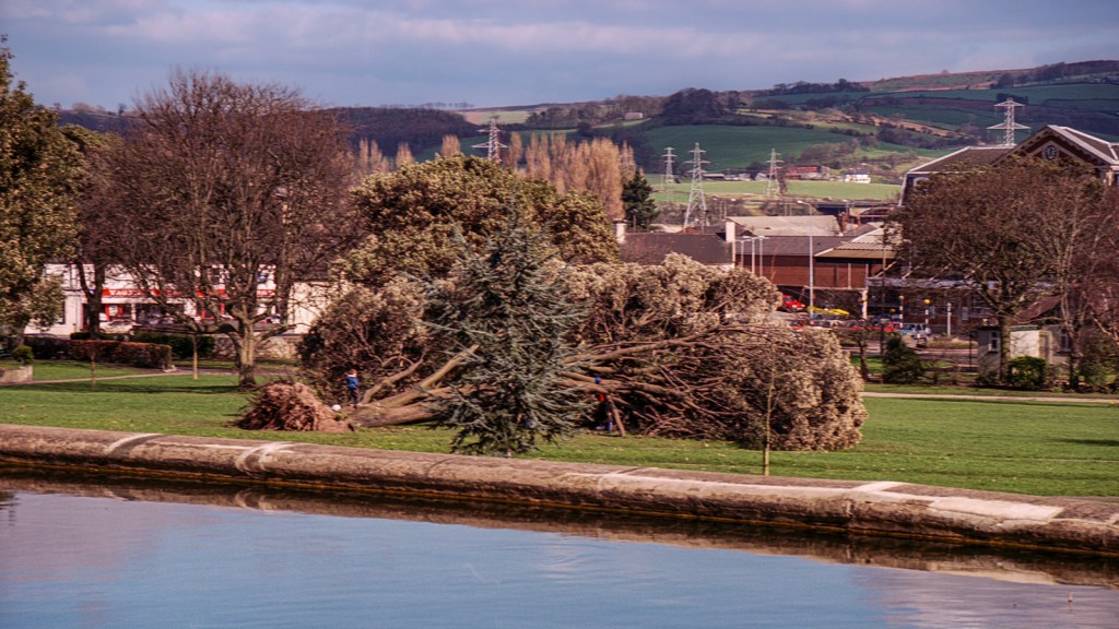 This post – originally written in 2019 – has been revised with new information and improved photography. In the original I (wrongly) assumed the tree that came down in Courtenay Park was due to the Great Storm of 1987. I have done my research and found that the photos were taken in March and April 1990, not long after the Burns Day storm (sometimes known as Cyclone Daria) that hit north-west Europe on 25th-26th January 1990. Damage was actually more widespread geographically than in the Great Storm.