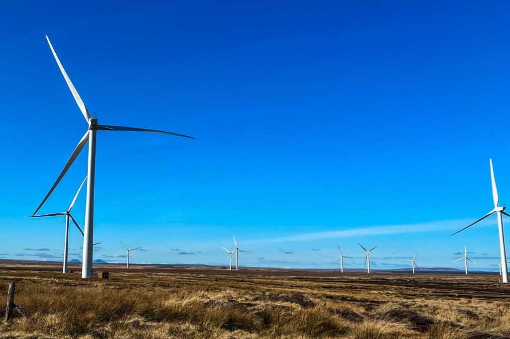 We finally left Castletown and set off across the Highlands from north-east to south west. Our first stop – at 13:40 – was at a wind farm. Because of my background in energy and climate change I was keen to stop at a windfarm, and there are plenty of these in the Highlands. The wind turbines are, to my eye, things of enormous beauty and grace. They represent survival into the far future – and not just survival but comfortable living. Below are a few iPhone snaps of part of one of the larger wind farms.
