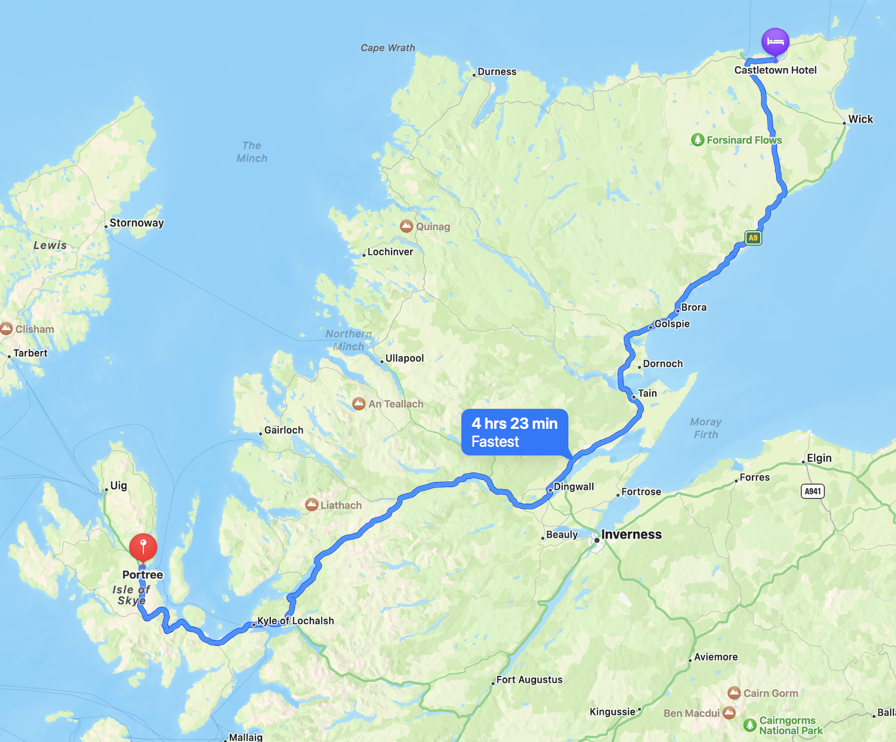 Hotel availability and prices prevented us from doing this. Whilst the drive from Durness to Portree would have been manageable in terms of time – with photography stops along the way – the drive from Castletown would have taken far too long. The cross-country route we took was very good and we were able to make a few stops along the way.