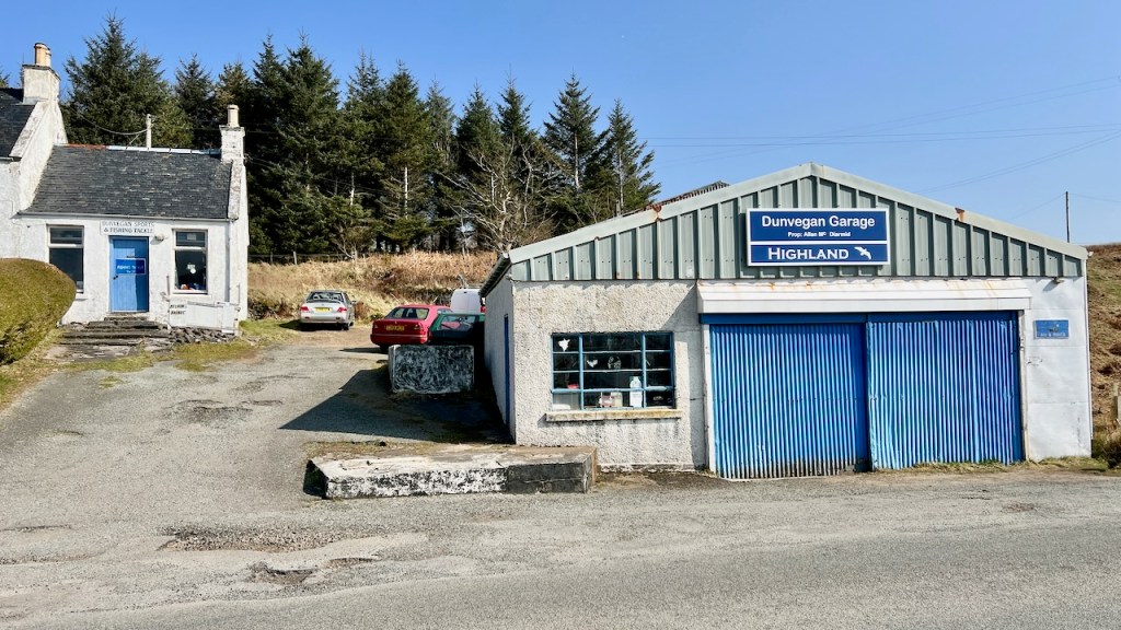 I do not want to give the impression that Dunvegan is dilapidated, because a good deal of it isn’t. In fact, there are more cafe’s here per head of population than most places we have visited, and they seemed quite good, although we made do with cheese rolls in the (free) car park. Photographed above: the oldest bakery on Skye. However, it was not open at the time of our visit which is a shame, as there are few things I like more than a good bakery. Notice the particularly impressive potholes outside Dunvegan garage – a ploy to gain customers perhaps?!