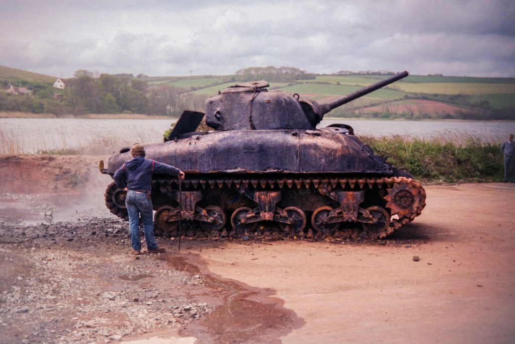 In August 1984 I made one of my regular trips home to Devon from London and I had heard that a Sherman tank had been raised off the sea bed at Torcross just a few months earlier. The pictures show the tank long before it was cleaned up and became a fixed monument on the beach.
