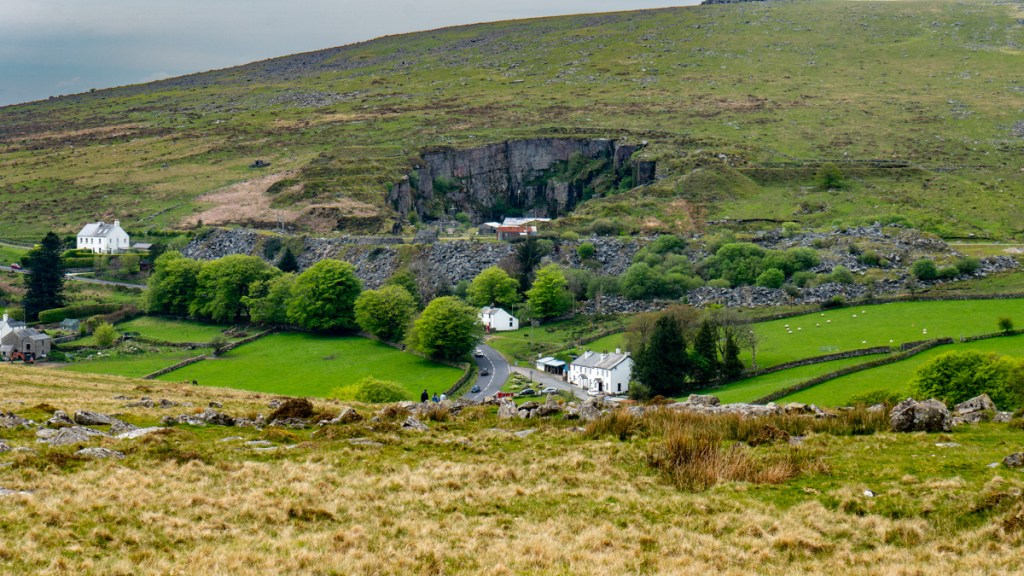 The quarry was a latecomer by local standards, being opened in 1876. The New Scotland Yard building of the 1950’s is built with granite from here. The old London Bridge stone was cleaned and repaired here before 200 tons were shipped to Arizona for reconstruction. Granite clitter and spoil from the quarry – and all the prestige structures built using it – are piled in an enormous heap in front of the quarry, quite a sight in itself.
