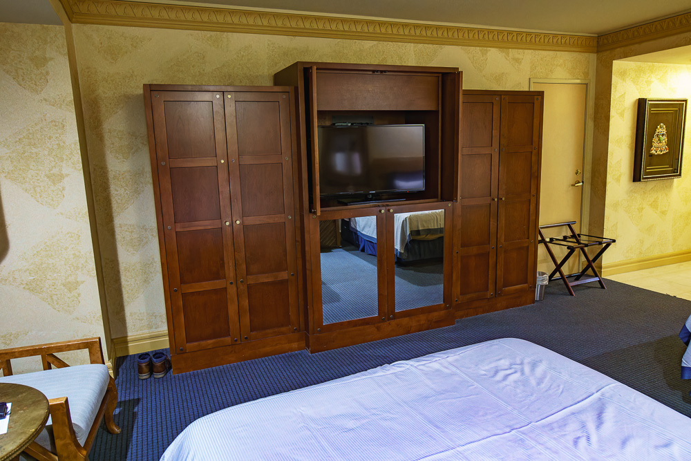 Like the majority of tourists I had a basic room with two double beds; there was plenty of space for clothes storage, a good quality 42″ LED television, and plenty of sockets to charge gadgets. The bathroom included a bath, shower, hand basin and toilet. There is a free and frequent elevated tram to take you to the nearby resorts of Mandalay and Excalibur. Like most hotels in Vegas there is a good selection of cafes and restaurants, but for a good bar you would probably need to head elsewhere. The WiFi is easy to use and pretty fast.