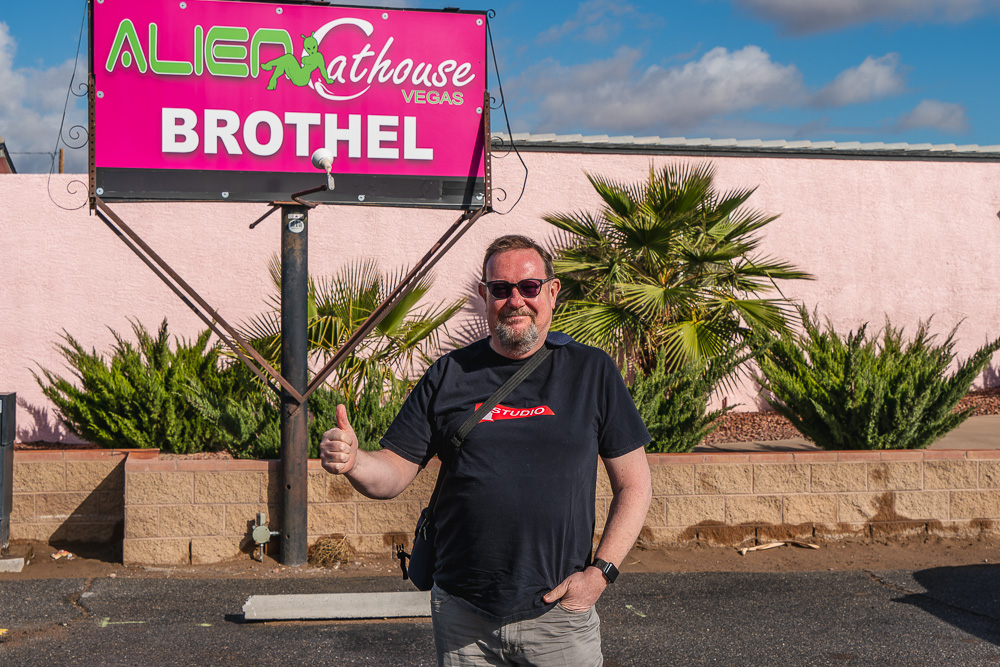 Anyway, I carried on up the I95 looking out for the truck stop that Rena and I spent an hour or so at 20 years before, but I couldn’t find it, so we stopped at a roadside brothel instead. Not really; we stopped at the Area 51 Alien Centre, with a brothel right next door, which I suspected was not for Vulcans. Klingons maybe, but definitely not Vulcans. Anyway, as a human-Vulcan hybrid I had my photo taken – just for the novelty you understand.