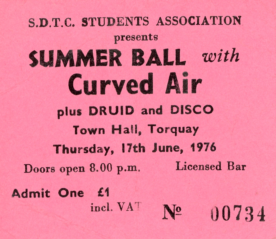 | 17 June | Curved Air | Torquay Town Hall | SDTC gig |